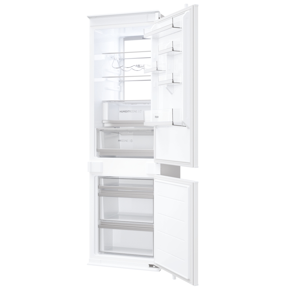 Haier Refrigerator. Capacidad neta total: 268 L. Bisagra para puerta: Derecho. Clase climática: SN-T, Nivel de ruido: 32 dB. Frigorífico, capacidad neta: 182 L, Antiescarcha (nevera), Luz interior de la nevera, Frigorífico, número de compartimentos: 4, Número de compartimientos para verduras: 1. Congelador, capacidad neta: 86 L, Capacidad de congelación: 8 kg/24h, Antiescarcha (congelador). Clase de eficiencia de energía: C, Consumo de energía anual: 150 kWh. Color del producto: Blanco